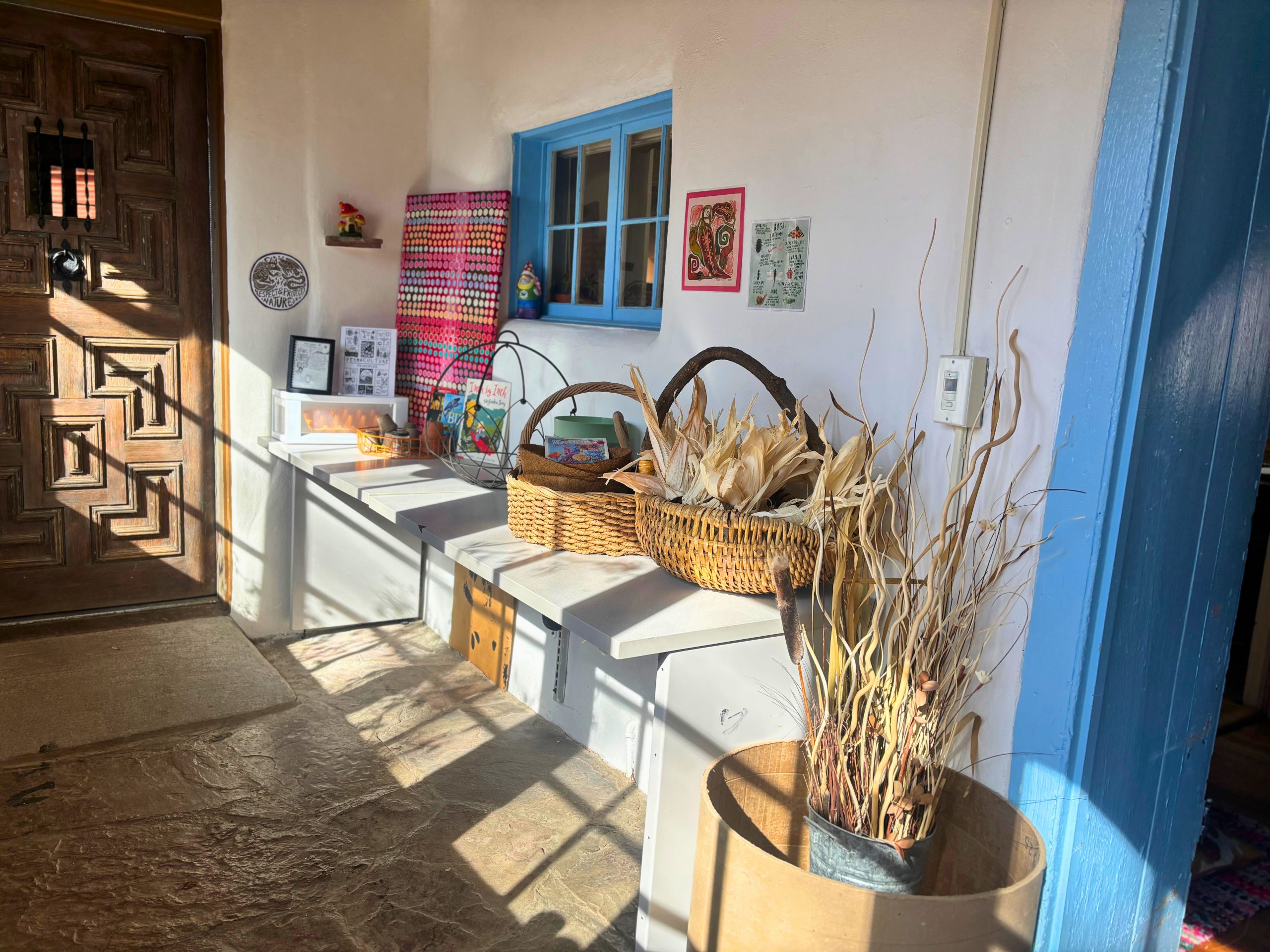 Inspire Roots’ happy place! A bright room bathed with an abundance of sunshine pouring through large windows. The stone floor grounds the space in earthy texture and makes for easy cleanup. This welcoming nature cove is dedicated to the magic of beginnings—starting seeds, nurturing sprouts, learning the living science of soil, and mastering the art of composting. Fully equipped with trays, trowels, pots, seed packets, watering cans, bins for compost and worms [for vermicomposting] and more!